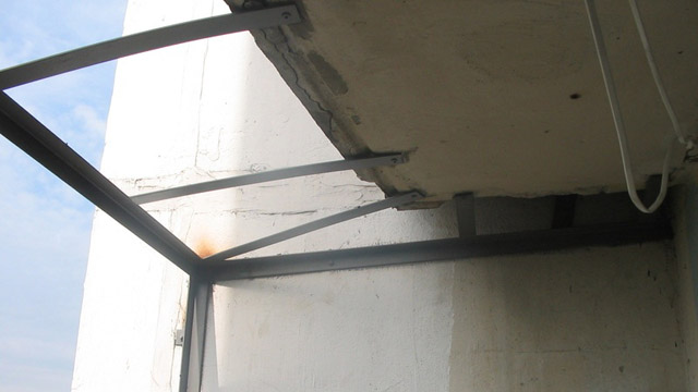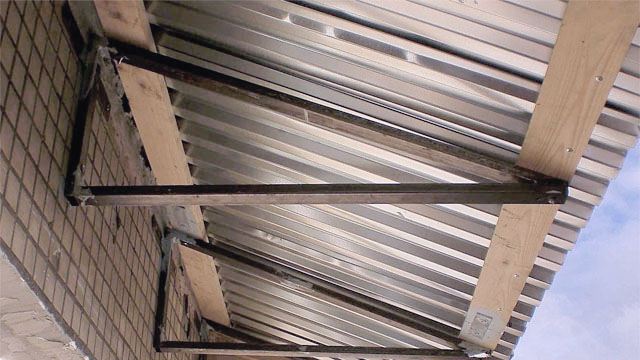 Первым делом на балконе устанавливаются несущие конструкции из прочного металла. Впоследствии они будут служить каркасом. Эти металлоконструкции, имеющие треугольную форму, крепятся к стенам здания с помощью анкерных болтов. Получается, что они находятся под крышей и, правильно распределяя нагрузку, надежно держат ее.